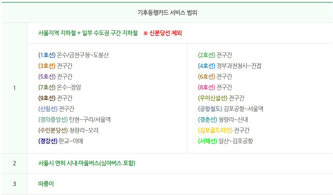 즉, 수도권 대부분의 출퇴근·통학 노선을 기후동행카드로 해결할 수 있습니다.