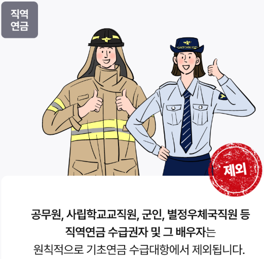 공무원연금, 사학연금, 군인연금, 별정우체국연금 등의 연금을 이미 받고 있는 경우, 기초연금 수급 대상에서 제외되거나 제한될 수 있습니다.