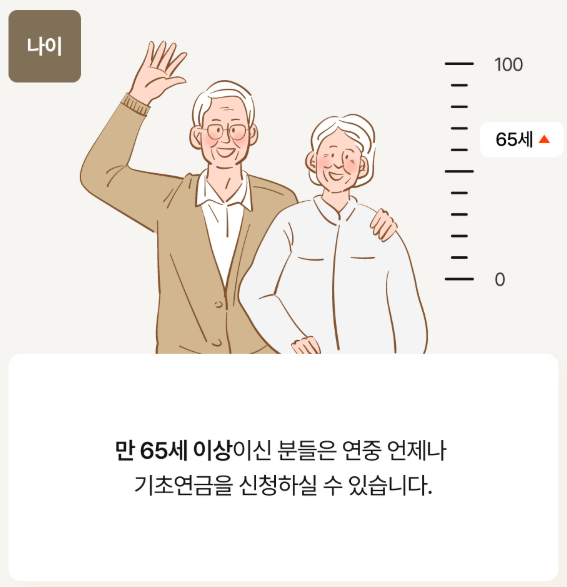 만 65세 이상이어야 하며, 2025년 기준으로 생일이 속한 달의 바로 전 달부터 신청 가능합니다. 예를 들어, 생일이 1960년 4월인 경우, 2025년 3월 1일부터 신청이 가능합니다.